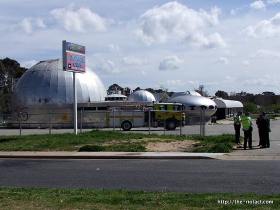 TheRiotAct.com September 28th reports on a fire at the "derelict" planetarium buildings. Apparently some parts of the property were badly damaged. Clearly the Futuro was not destroyed or there would be nothing to restore at the university but we have been unable to find any reporting that details whether the Futuro received any damage or not.