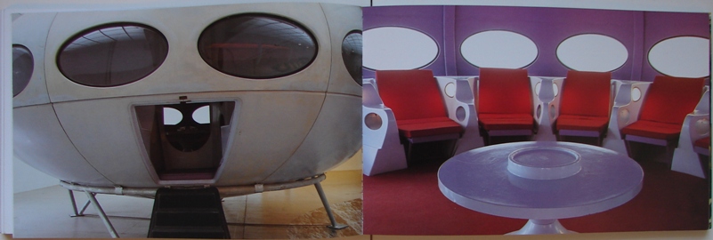 Futuro #000 and the book features several photos of the exhibition and the Futuro.
