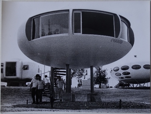Specifically the shot shows the Futuro along with (in the foreground) Jean Maneval's Bulle Six Coques and (to the right of the Futuro) Casoni & Casoni's Rondo.