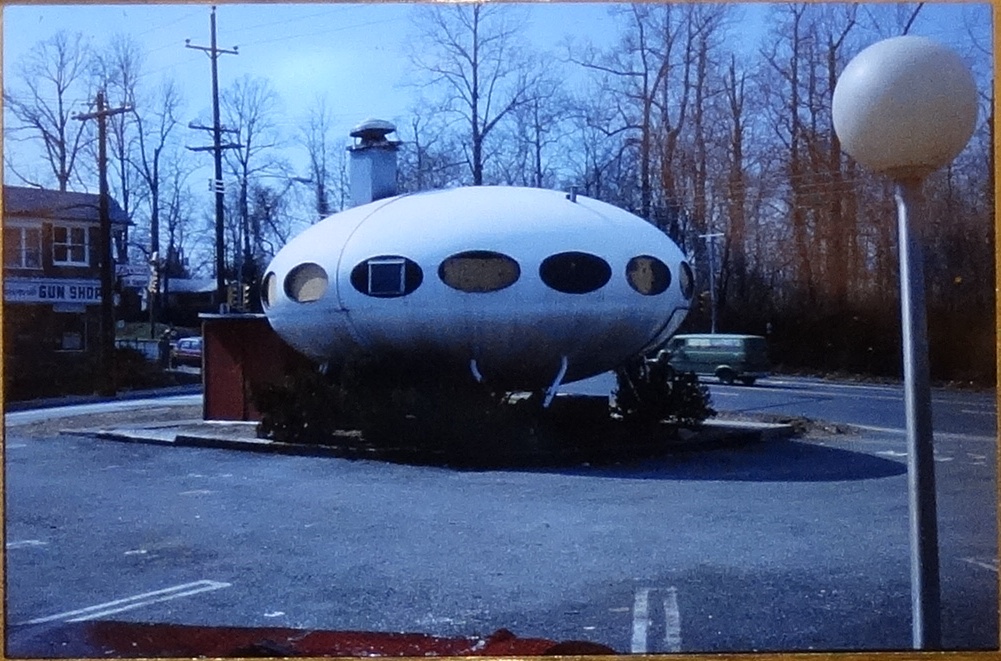 "was originally built as a restaurant. According to the previous owner, the restaurant was called "The Round House" in Philadelphia. Unfortunately, I have not been able to find any information on this. It was only a restaurant until 1978, when the owners passed away. The gentleman I bought it from purchased it from their estate and used it as a travel agency. As you can imagine, it attracted a lot of attention. Sometime in the early eighties (I believe), he closed that business and moved the Futuro to its current location near Philadelphia"