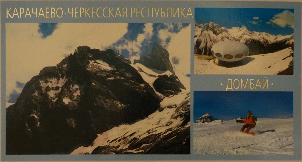 Dombai Futuro. The cards are 7¾" by 4", a somewhat unusual size. They both carry the text (translated by Google) "Karachay-Cherkess Republic Dombai" on the front.