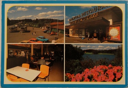This multi-view postcard of a Shell Gas Station/Rest Stop on Lake Lahnajärvi shows