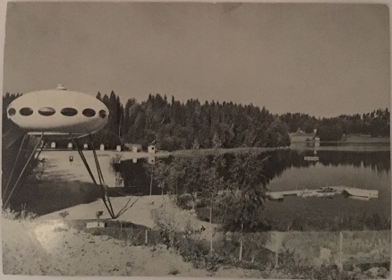 The Futuro was located in Lahnajärvi from 1969 through the very early 1980's. The appearance of the photo itself suggests to us that it was most likely taken early on in the Futuro's stay in Lahnajärvi; likely 1969 or very early 1970's.