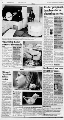 The article was a lighter hearted "strip club related" follow up to an actual news story about a local strip club owner. It provides a little generic Futuro history and then goes on to describe how the standard Futuro entry was replaced with "wildly carpeted stairs (that) lead to a round black-lighted room with a bar and a circle of tiny, private booths." The article ends with the observation that "in this Futuro, the windows stay completely covered."