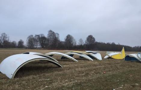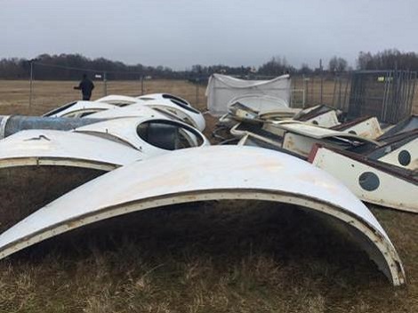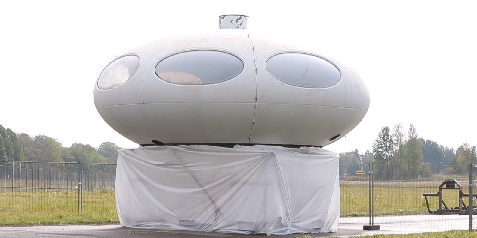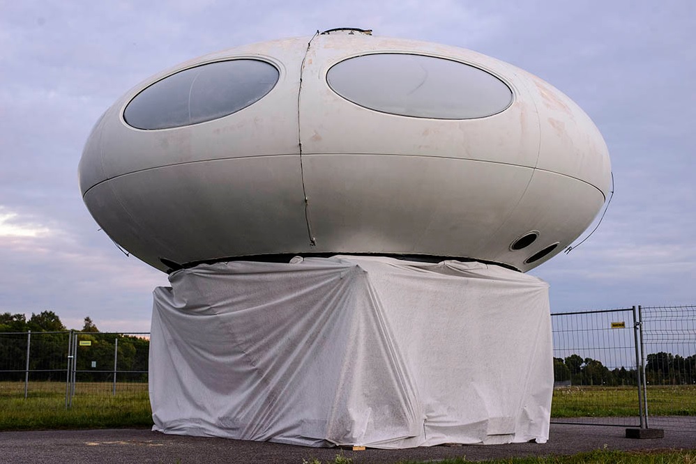 Linköping where it will be restored and then used as a conference room. This Futuro remains at the Norrköping-Bråvalla Airfield where it is being prepared for public auction by the Swedish agency