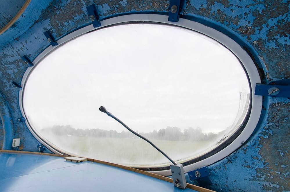 This is of course one of the three Futuros originally purchased and used by the Swedish Air Force with fewer larger windows and an entry through the bottom of the unit.