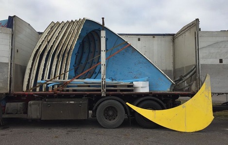The two Stråtjära Futuros were removed from the 14 meter tall towers upon which they sat on 042116 and began a multi-stage journey by both road and water to new locations. That journey saw a road trip from Stråtjära to the