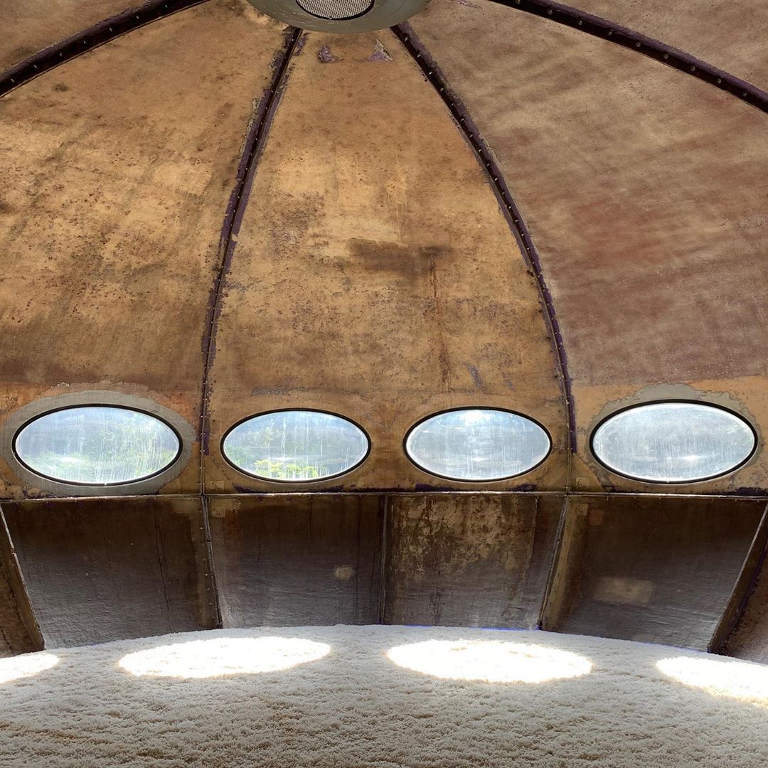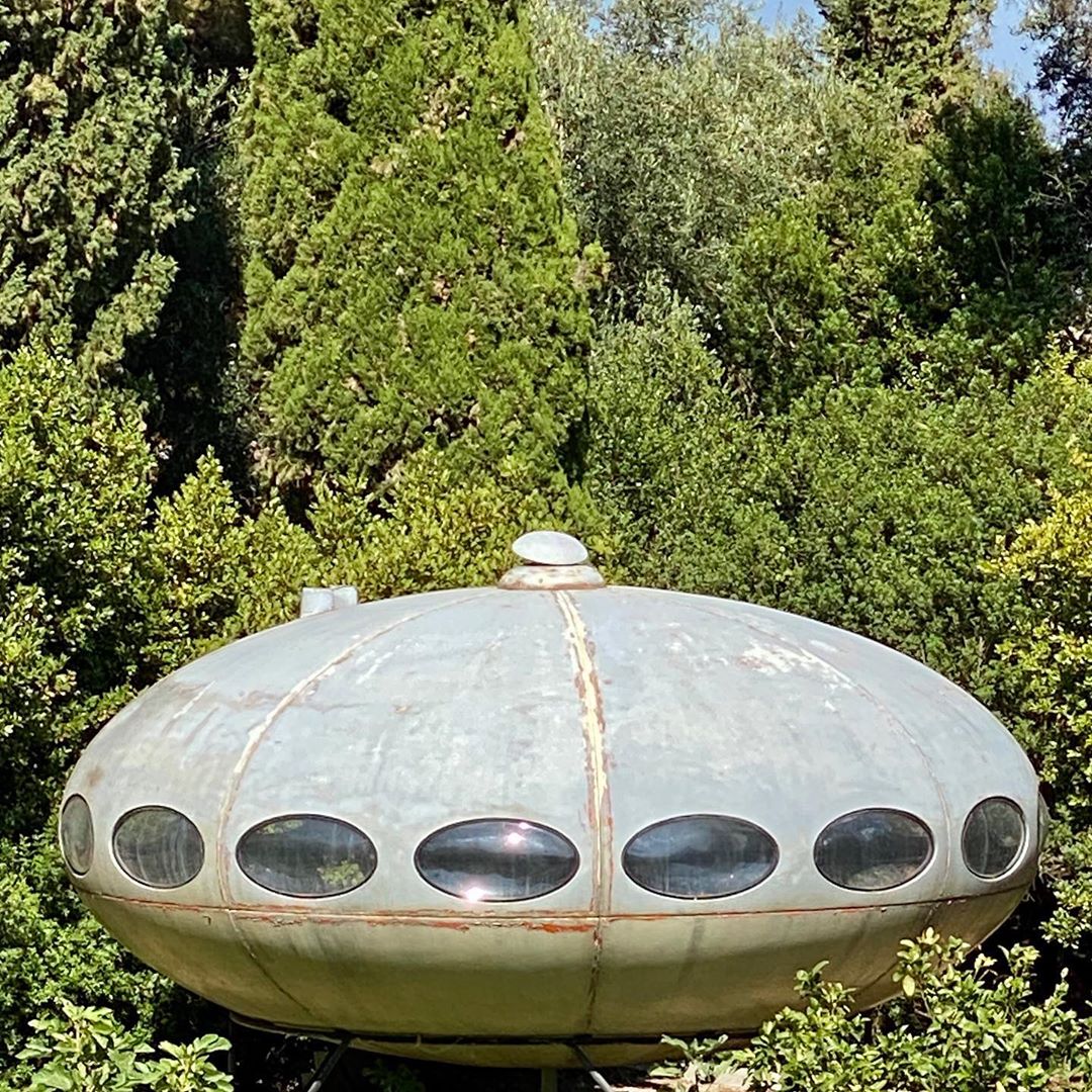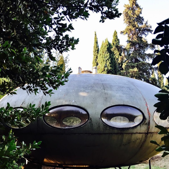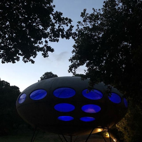 Owner Dakis Joannou recently posted this great shot of his Futuro at dusk to his Instagram account