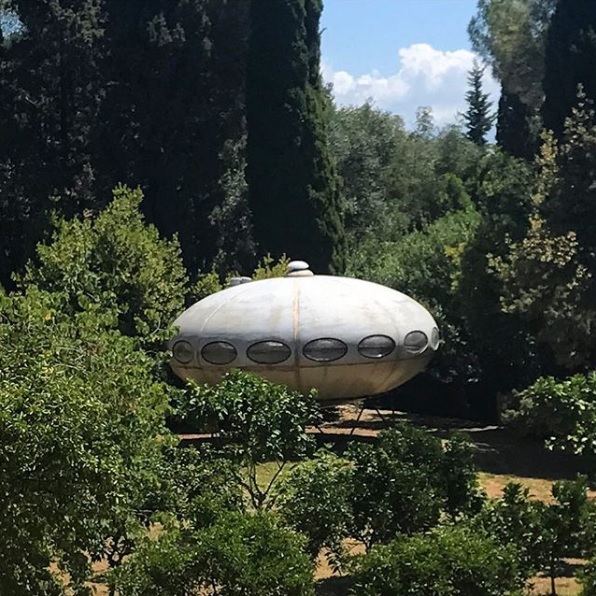 Alara's post is tagged with, among others, "dakis joannou, futuro house, corfu" and those tags were something to start the search with. A trip to Wikipedia revealed that